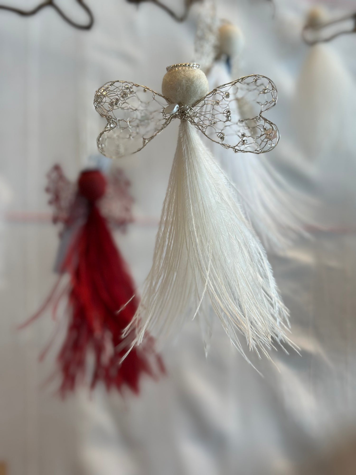 Så vakre og unike, med skjørt av strutsefjær og heklede perlevinger. En nydelig liten gave å gi ❤️