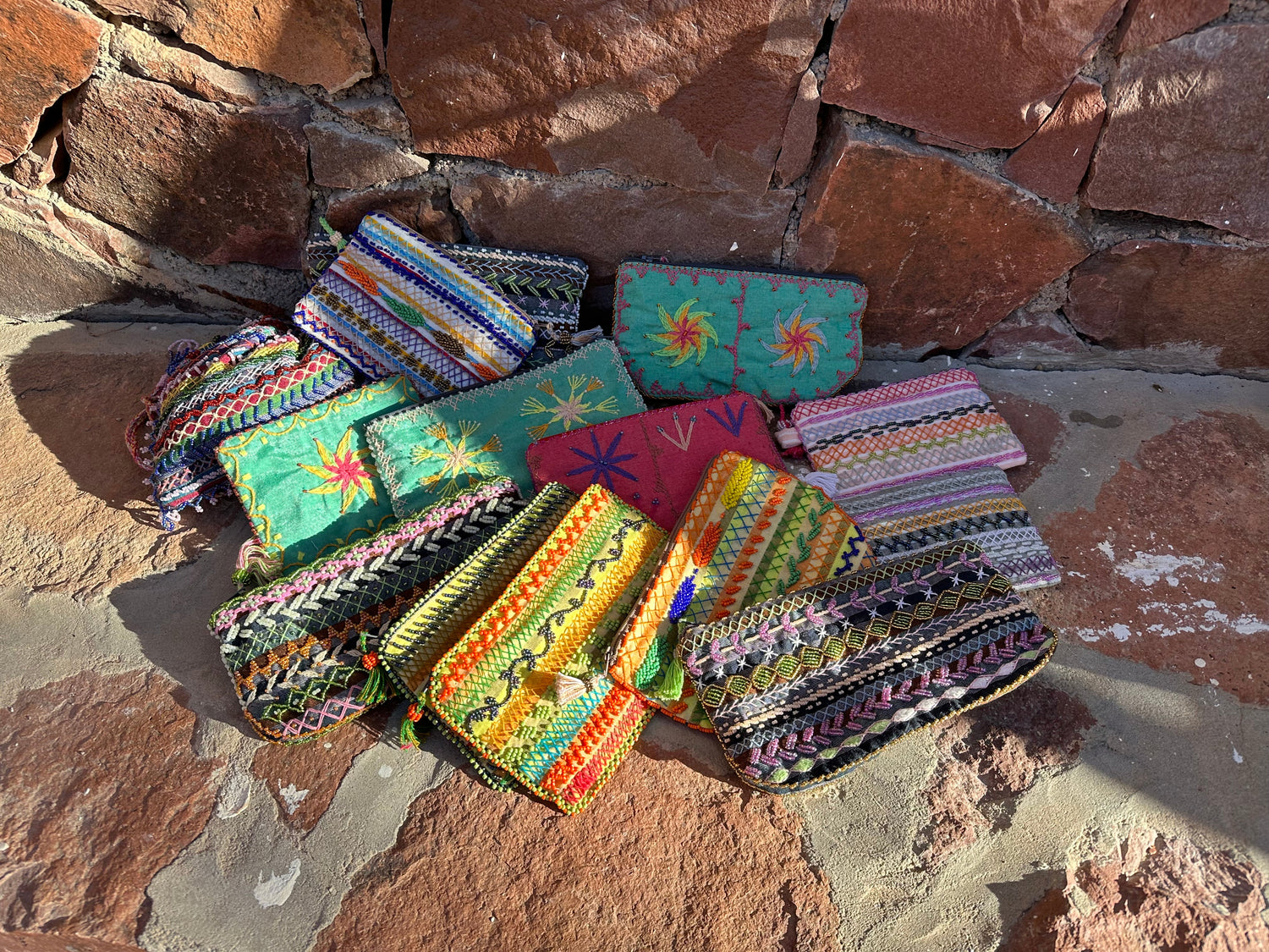 Unikt utvalg av vesker og punger i tradisjonelt beduin håndarbeid. Fra landsbyene...