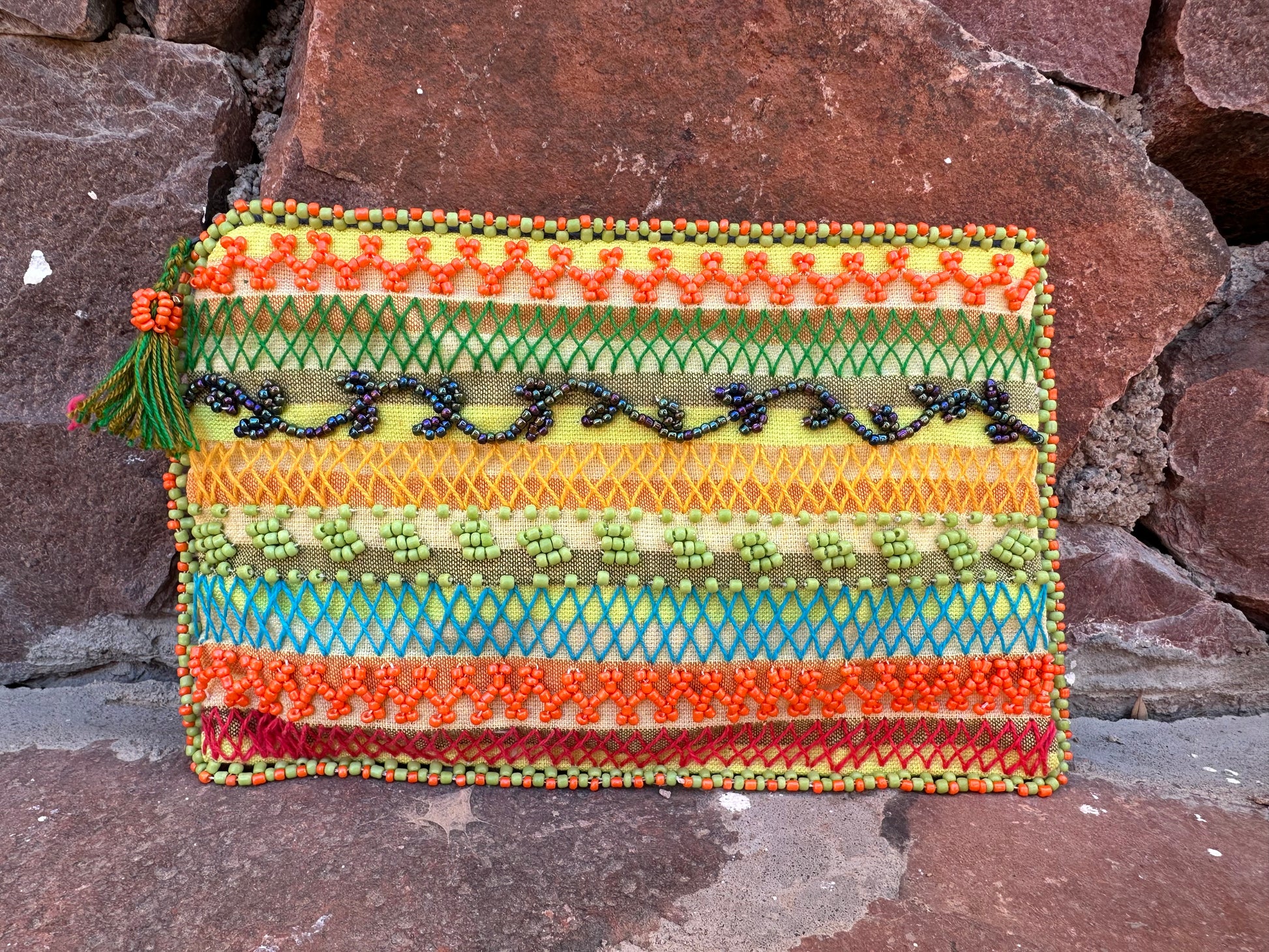 Dette er unikt tradisjonelt håndarbeid fra beduin kvinner i områdene rundt St. Catherine i Sinai fjellene. Kvinnene er organisert i et kvinnefelleskap og salget av dette håndarbeidet gir et viktig bidrag til familienes økonomi.
