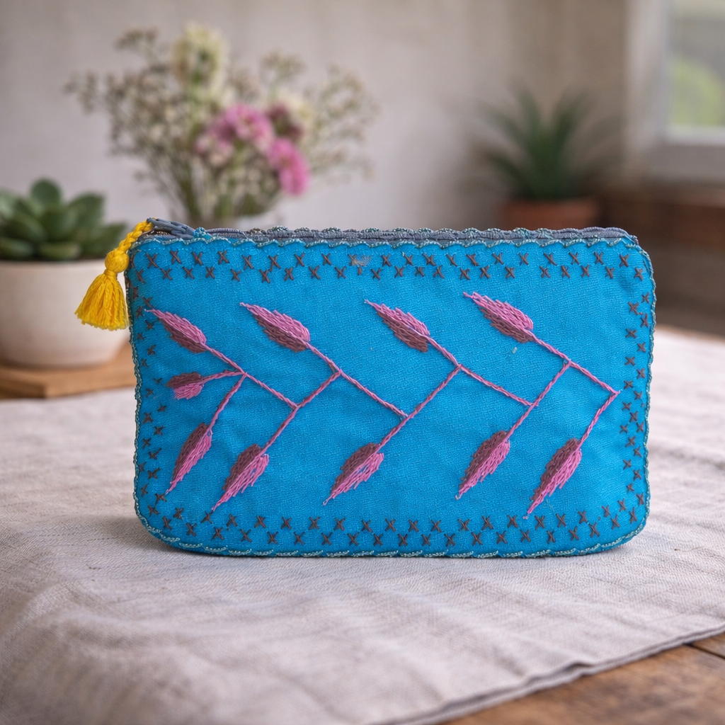 Nydelig liten veske som er vakkert og rikt brodert med små perler, foret og med glidelås med dusk. Den måler ca 22 x 13 cm. Disse er perfekte som en liten veske/ pung til kort og penger og telefon, til sminken, og andre fine småting man bærer med seg🌸
