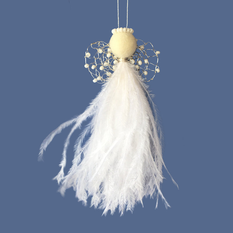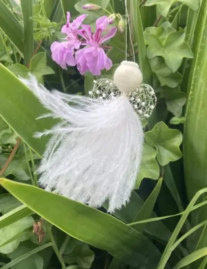 De små englene kommer i en liten lukket plastpose. Strutsefjærene kan da framstå nokså “flate”. Men får de luft under vingene, bokstavelig talt, så vil fjærene bli voluminøse. Og jo lenger de henger i luft, dess mer vil de “bruse”. Det medfølger et fint kort med informasjon om engelen og hver engel har egen tagg med navnet sitt.